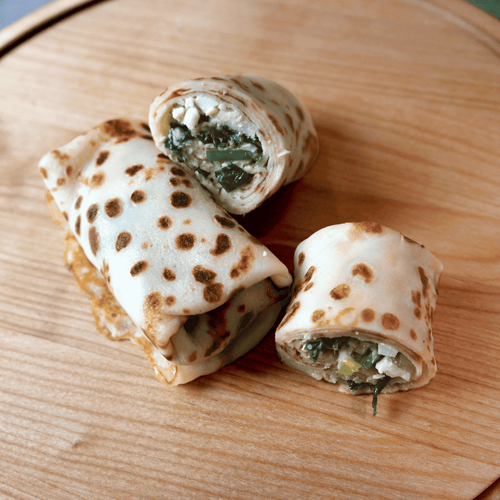 Блины с зелёным луком и яйцом